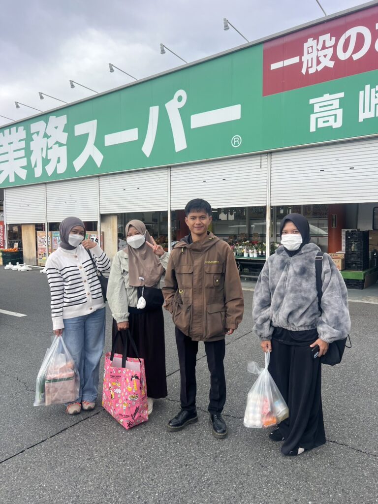 近隣のスーパーにて食材の購入方法を説明しました。